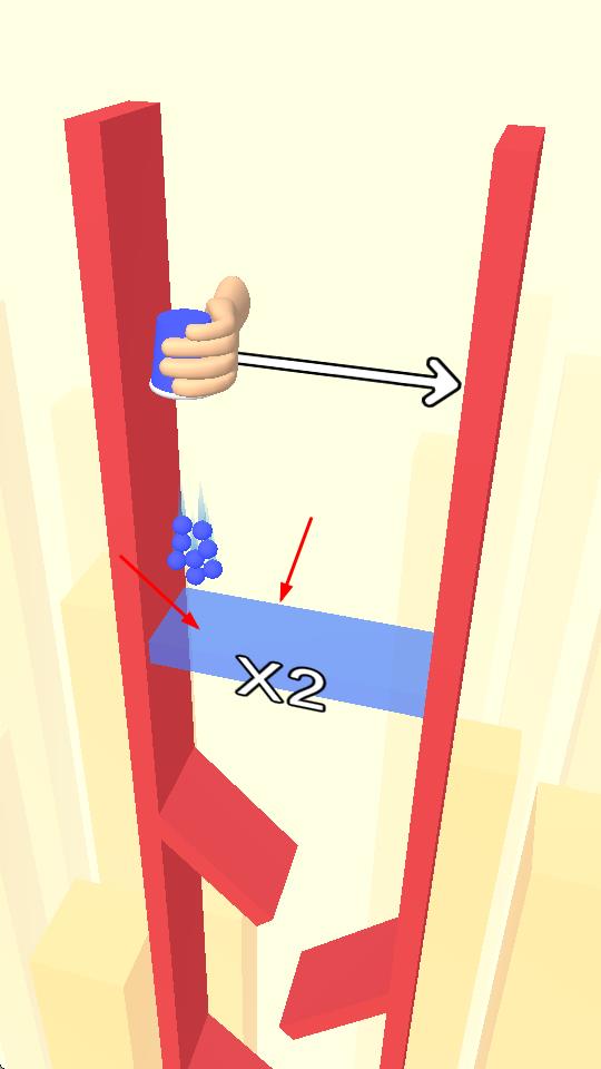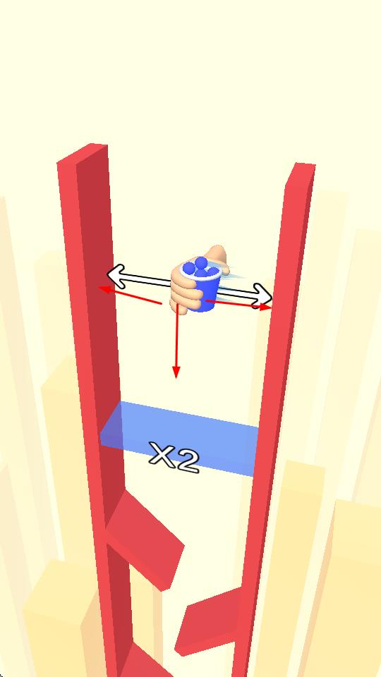 1、进入游戏后,操控手持蓝色杯子的手在红色框架内移动,可左右和上下移动,收集蓝色小球,同时利用带有倍数标识的蓝色区域。