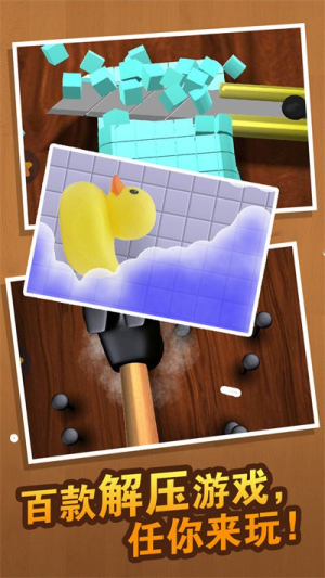 - 发泄解压大合集汇集百种释放压力的趣味玩法,满足不同解压需求。包含捏泡泡、粉碎物品等多种经典解压形式,操作简单效果直观。清新简洁的界面设计,快速进