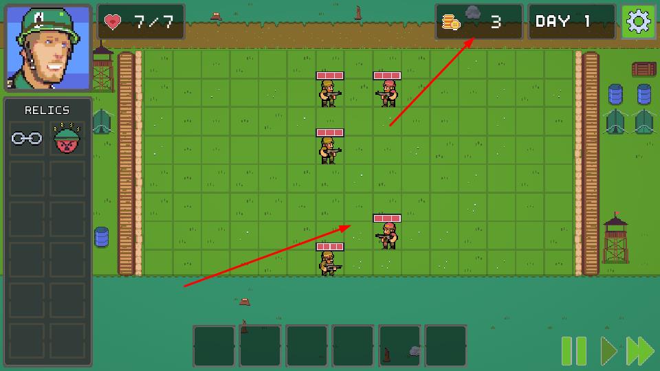 1、点击NEW GAME,能够快速进入游戏,在网格战场,依据金币与单位,规划士兵部署,正式开启战斗流程。