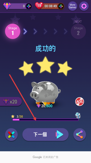 3、当界面显示成功字样时,说明已顺利完成当前关卡,可点击进入下一关按钮,继续进行冒险,迎接新的挑战。