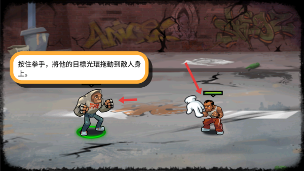 2、战斗时,按住拳手,拖动目标光环到敌人身上,锁定攻击对象,触发战斗流程。