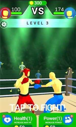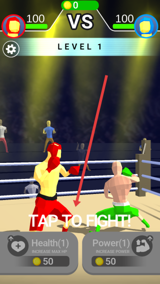 1、在拳击游戏Level-1界面,通过箭头指示点击TAP-TO-FIGHT按钮,进入拳击对战的操作环节。