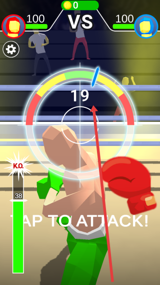 2、对战时按提示TAP-TO-ATTACK,需要在指针到达指定区域时点击屏幕,打出有效拳击攻击。
