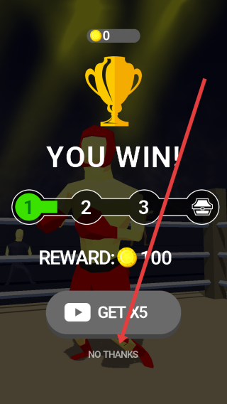 3、在获胜后在YOU-WIN界面,可以点击NO-THANKS按钮,跳过奖励翻倍,进入下一阶段游戏。