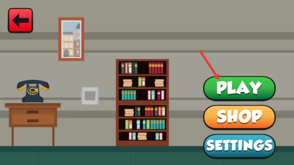 1、在游戏主界面房间场景,点击绿色PLAY按钮,进入关卡开始冒险。