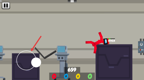 2、关卡中,操控红色火柴人,位移到敌人面前,进行战斗。