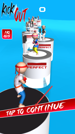 1、进入Kick Out游戏,点击TAP TO CONTINUE,让角色从起始圆柱出发,开启闯关。