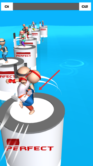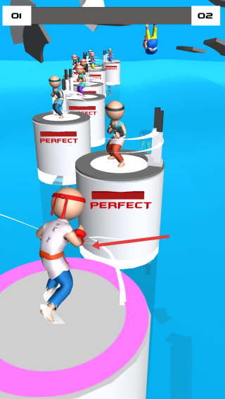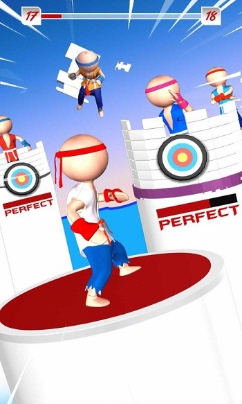 2、前行遇圆柱上敌人,操控角色靠近,在合适时机点击屏幕,发起拳击,将敌人打下圆柱。