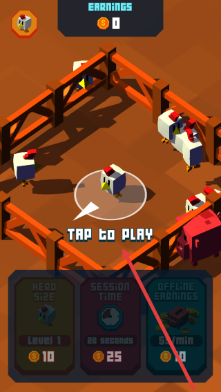 1、在农场主题游戏界面,按照箭头指示点击TRAP-TO-PLAY区域,开始抓捕小鸡的趣味游戏流程。