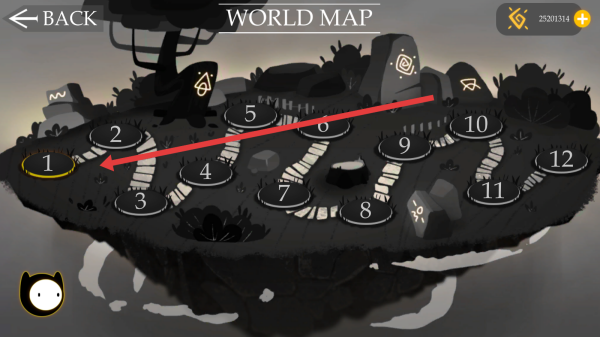 2、在进入到世界地图页选择并点击关卡1,随后进入该关卡的冒险场景,开启王子的森林探索之旅。