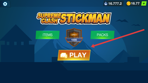 1、在Supreme-Stickman-Clash游戏主界面,通过点击PLAY按钮,准备进入火柴人对战关卡。