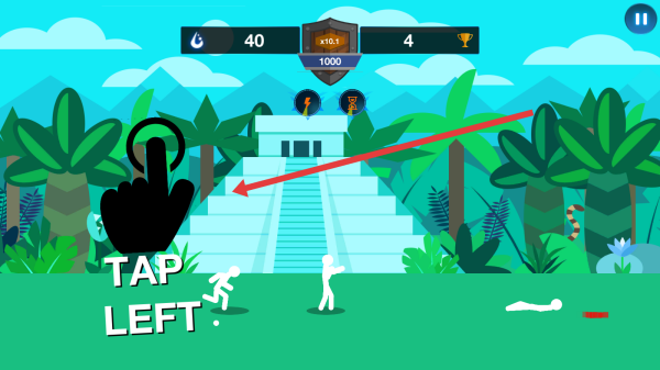 2、关卡内按提示TAP-LEFT,根据箭头的提示点击左侧区域,操控火柴人向目标建筑方向攻击。