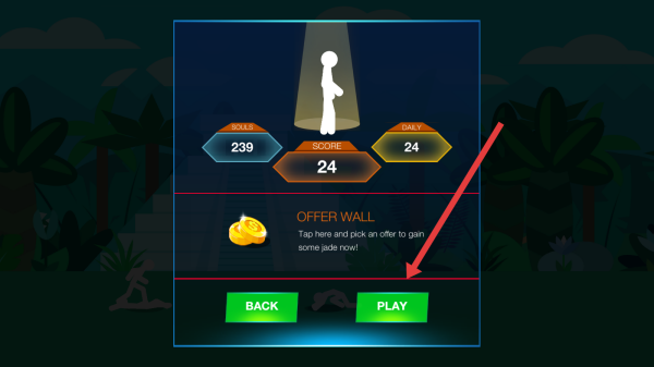 3、战斗结束后,可以通过在结算界面点击PLAY按钮,继续下一轮开启新的火柴人对战挑战。