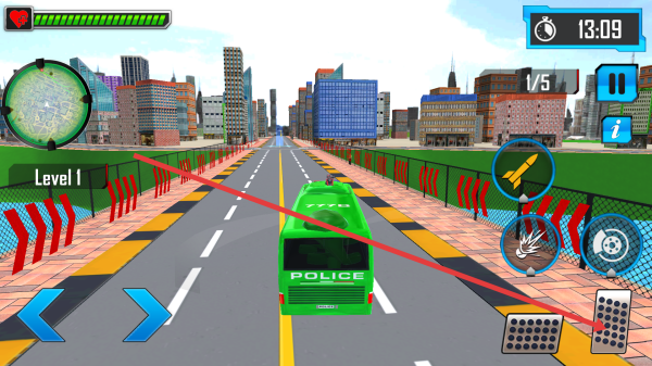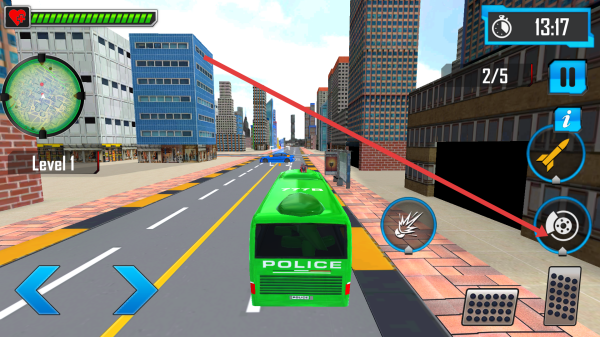 1、开始行驶的页面,通过左下角的左右箭头按钮控制车辆方向,在城市道路上行驶,注意躲避障碍物和其他车辆。