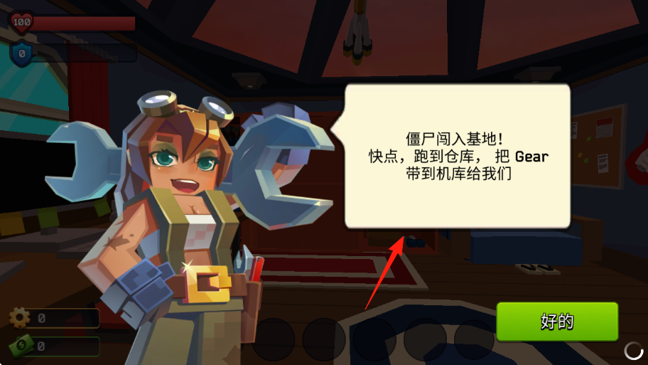 1、角色接到任务僵尸闯入基地!快点,跑到仓库,把Gear带到机库给我们,有好的交互按钮。