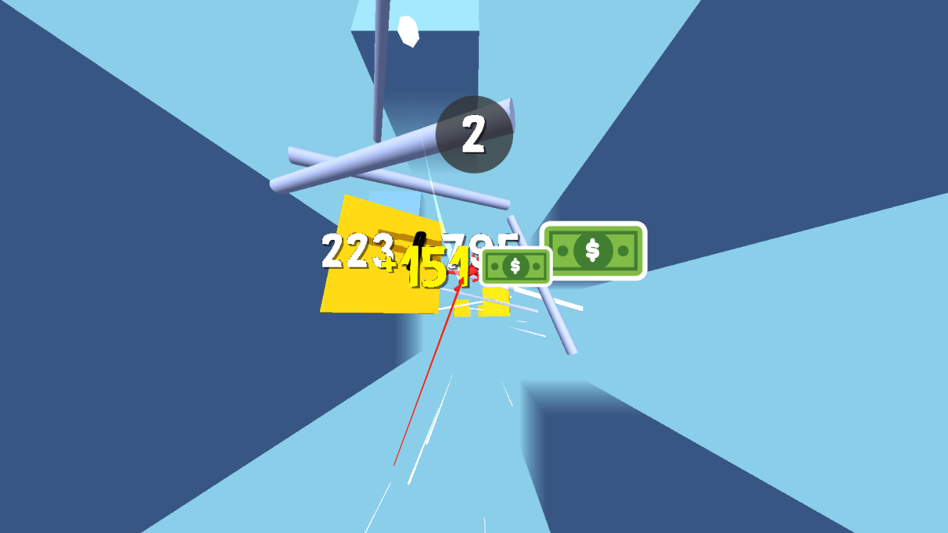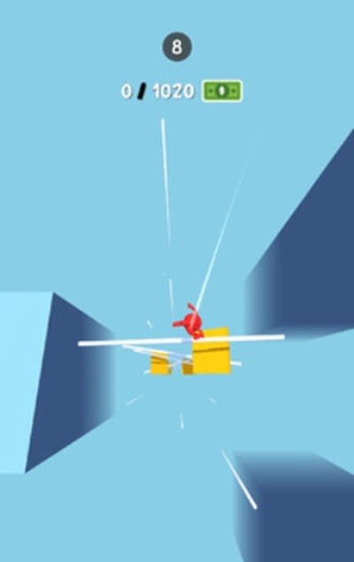 2、调整布娃娃的坠落方向,让布娃娃精准撞击到每一个障碍物,每撞到一个障碍物就会加钱。