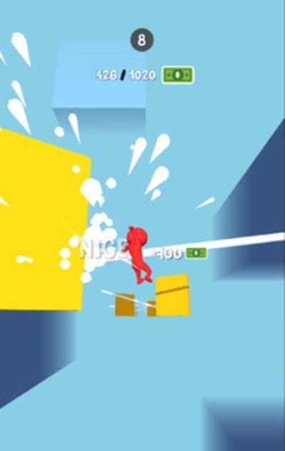3、精准撞击每一个障碍物,连续撞击,获得的奖励会翻倍,落地前完成金额目标,才能通关游戏。