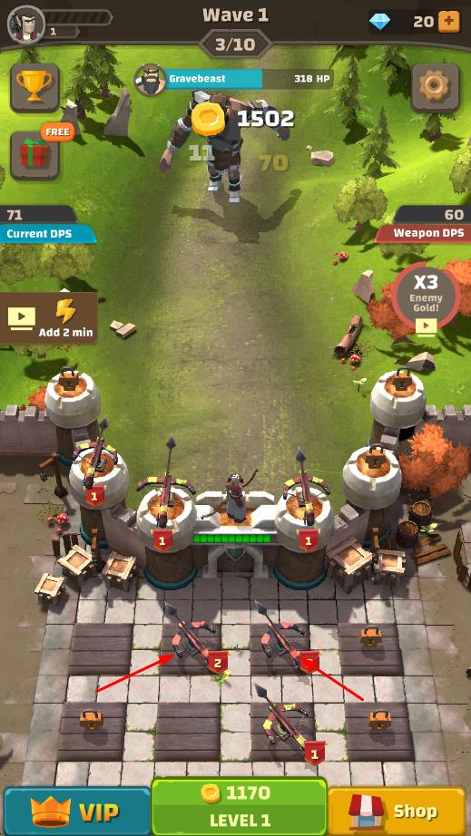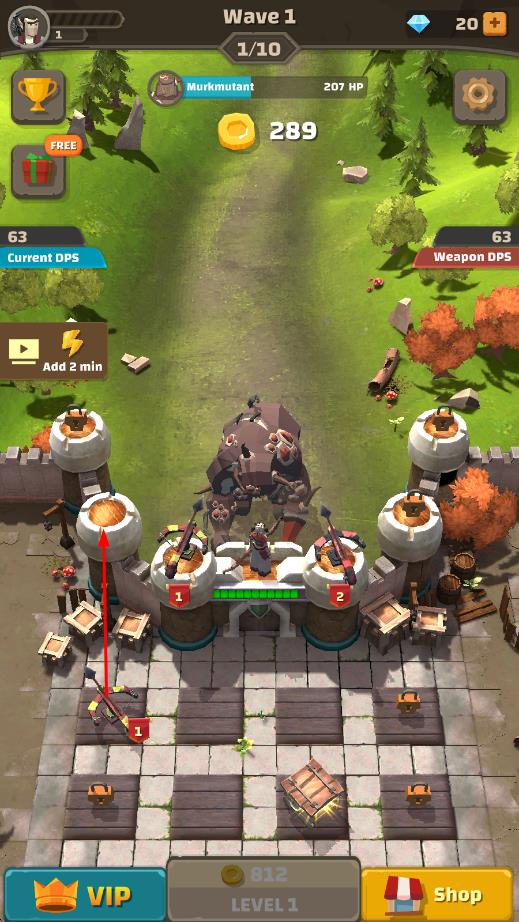 1、进入游戏后选择初始关卡,了解战场布局与敌人进攻路线,在指定位置放置基础箭头防御塔,准备迎接敌人的首轮进攻。