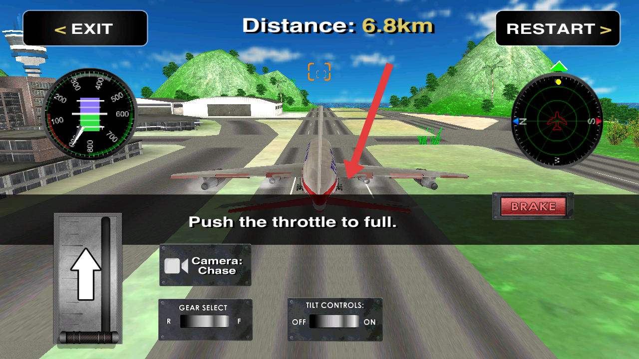 1、进入跑道场景后,找到左侧的油门控制杆,向上推动至最大档位,确保动力输出稳定,为起飞做好准备。