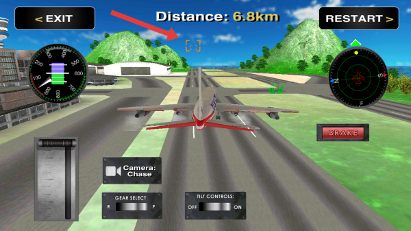 2、飞机离地起飞后,观察画面上方的瞄准标识,通过调整机身姿态,留意仪表盘和雷达信息,逐渐向目标前进。