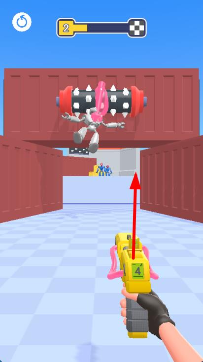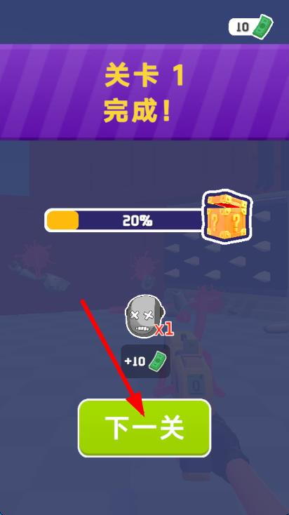 1、进入游戏后选择关卡,通过滑动屏幕调整角色视角,瞄准前方出现的敌人,点击射击按钮完成基础攻击操作。