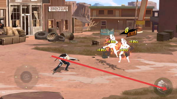1、进入游戏后,通过左下角的虚拟摇杆控制角色移动,点击右下角的拳头按键,对敌人进行攻击。