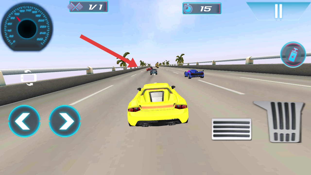 1、操控黄色跑车,需要借助左右方向键来调整路线,踩下油门超越前方的车辆,在计时赛中抢占优势。