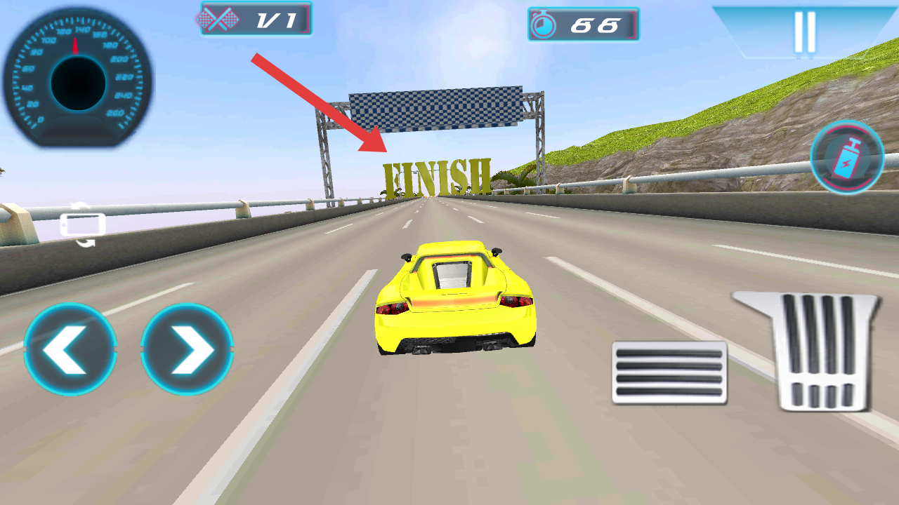 3、在快要到达终点的时刻需要加快车速,朝着标有FINISH的终点线进行冲刺,顺利完成比赛关卡。