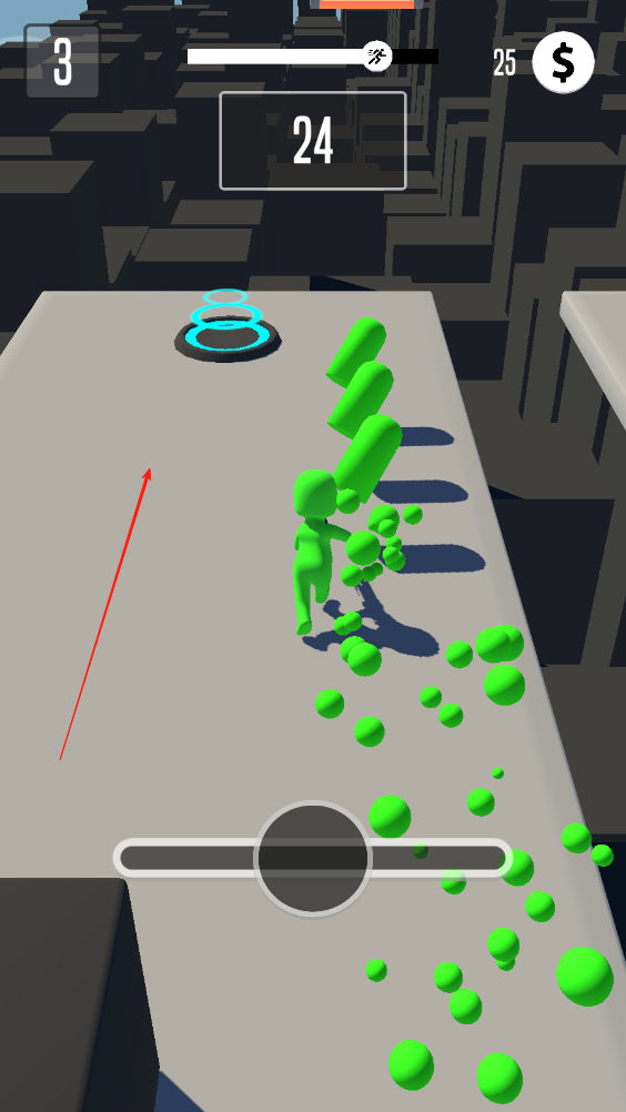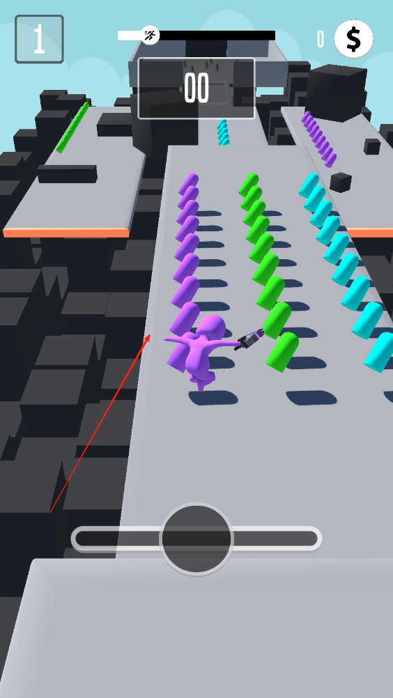 1、操控橡皮人开始移动,观察自己是什么颜色,就收集什么颜色的武器子弹,收集错了则会扣除已有子弹。