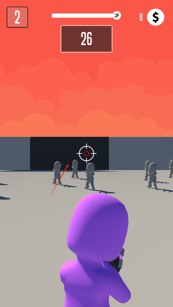 3、到达终点线后,利用收集到的子弹,移动准心,攻击即将靠近的所有人敌人,将他们都消灭完,才算游戏胜利。