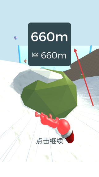 3、当游戏结束后,界面会呈现出本次游戏的滑行距离等信息,点击“点击继续”,可选择重新挑战或返回主界面。