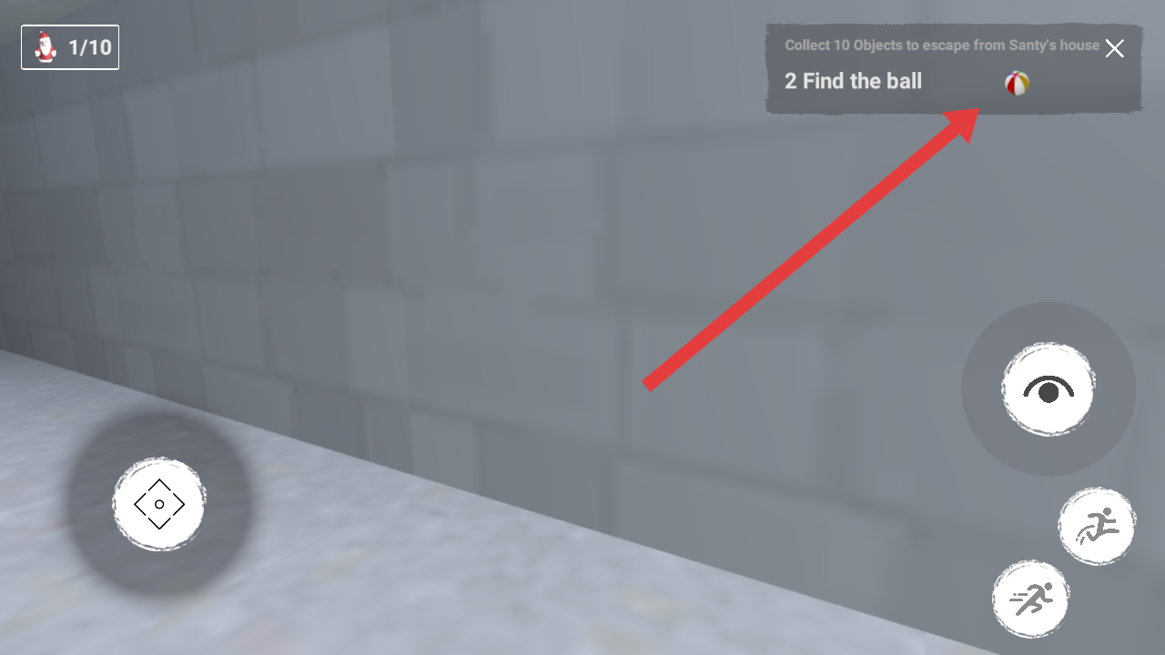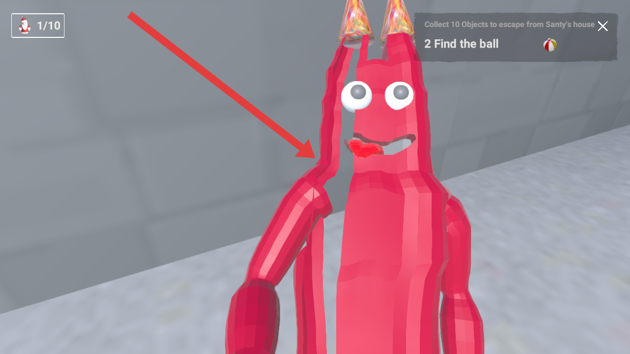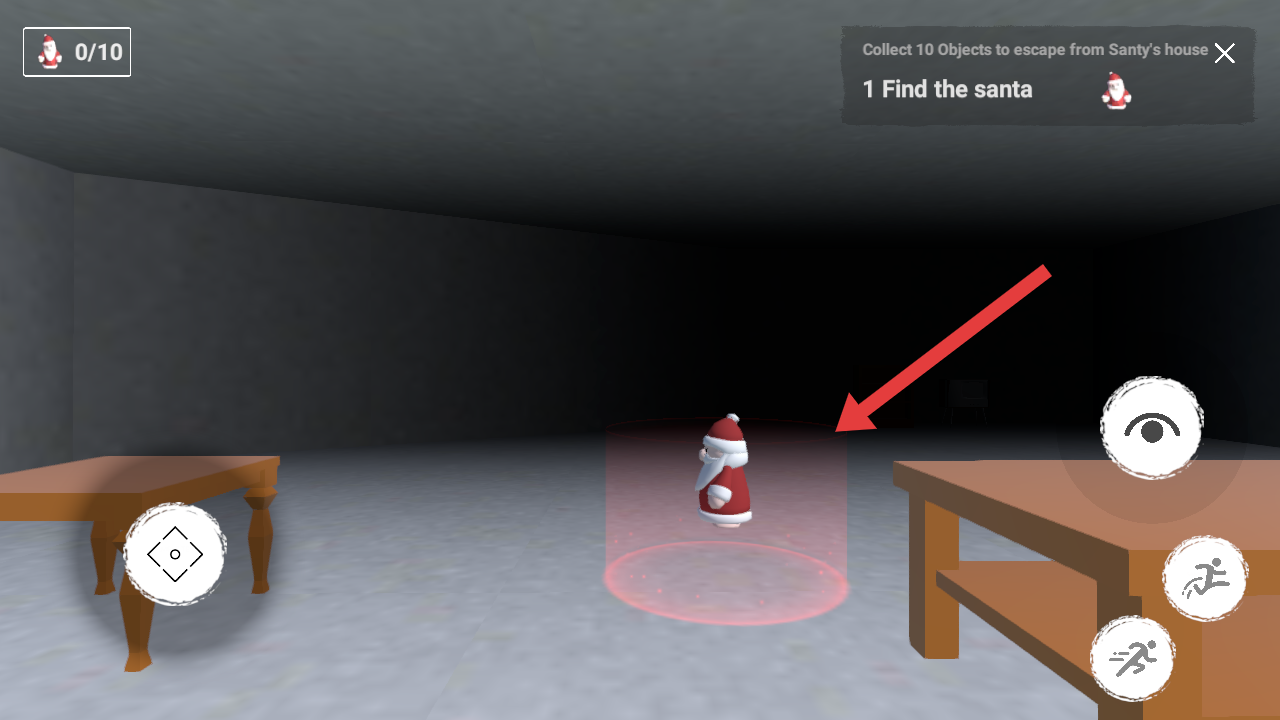 1、需要操控自己的角色靠近房间内发光的圣诞老人玩偶,完成Find the santa的系统任务。