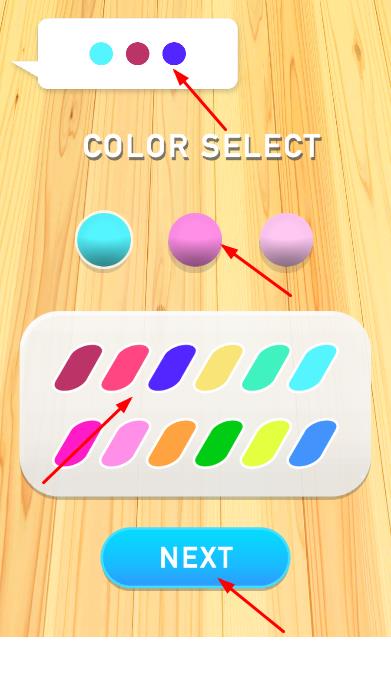 1、在颜色选择界面,从颜色条中挑选需要的颜色,点击对应色球,选择好后点击NEXT进入绘画环节。
