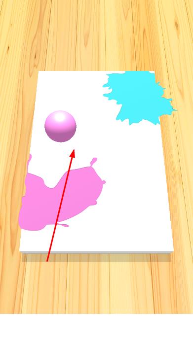 2、操控带有颜色的球体,将其发射到画板上,通过调整发射方向和力度,让球体在画板上滚动、碰撞,留下颜料痕迹。