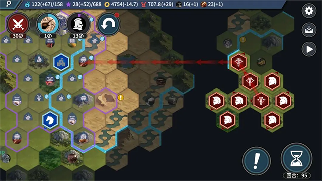 2、在外部威胁来袭时,部署部队并结合英雄技能,针对性地进行防御战布置,灵活调配作战单位和防御工事是胜利关键。