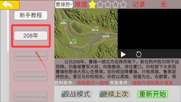 1、进入游戏后选择一个剧情,目前只有三国鼎立解锁。
