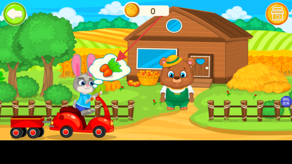 2、在游戏场景中,根据兔子头上的胡萝卜提示,前往对应的地点,完成收集胡萝卜的任务。