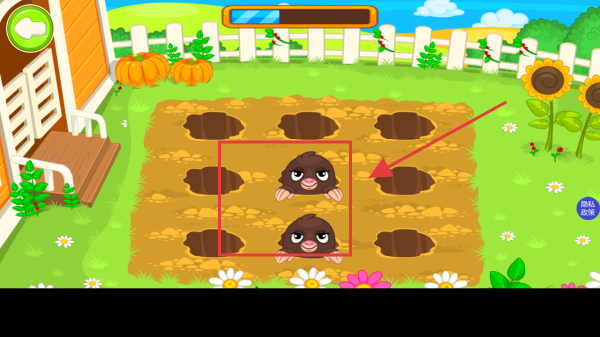 3、在打地鼠游戏场景中,操控角色点击红色方框内出现的地鼠,完成打地鼠任务,获取游戏奖励。