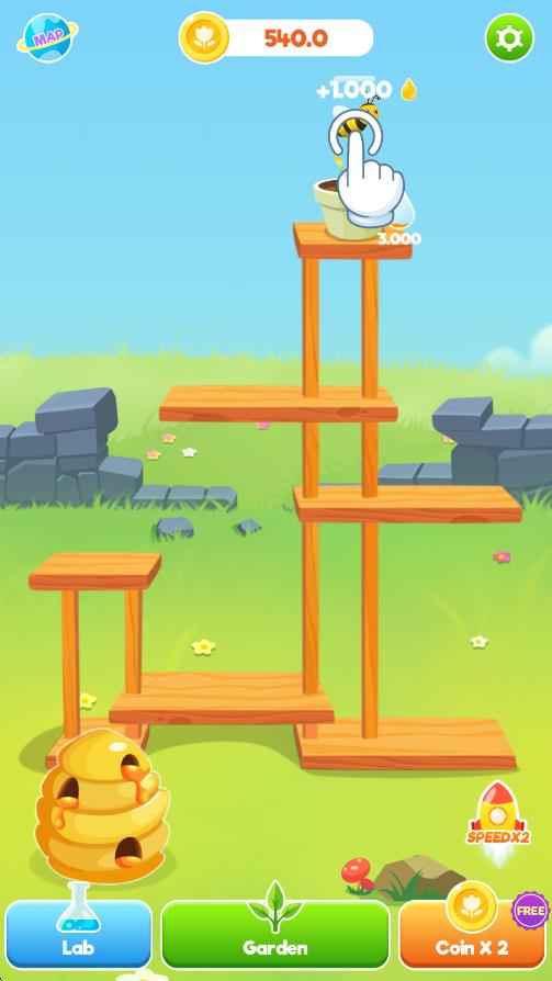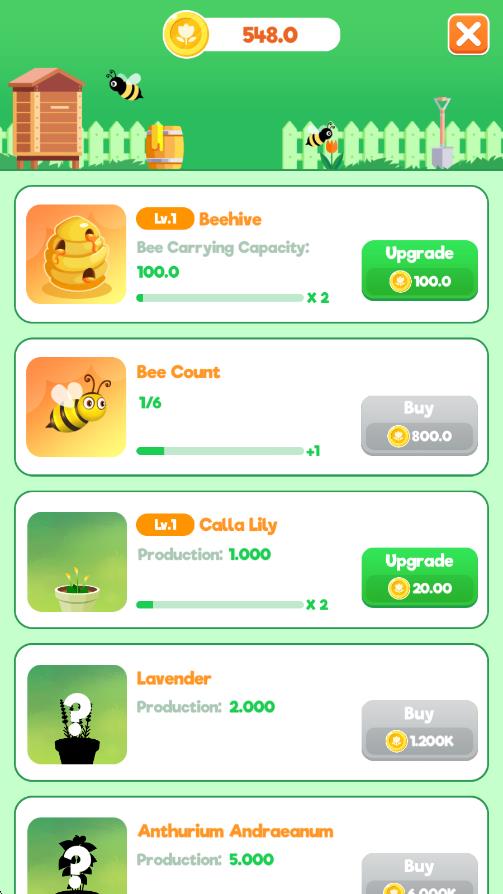 3、通过持续种植与蜜蜂养殖扩大花园规模,解锁稀有花种与特殊蜂种,打造繁荣的蜂蜜生产基地,实现花园的持续发展。