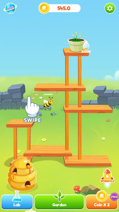 2、渐进式发展乐趣:从初始小花园逐步扩展,解锁新花种、新蜂种与装饰设施,每一步发展都带来新鲜体验,激励玩家持续经营。