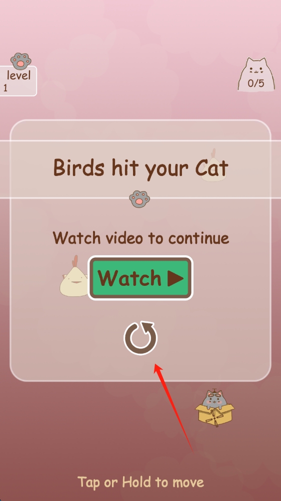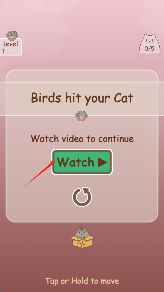 1、在游戏提示界面,跟随箭头提示,点击Watch,观看视频,继续游戏进程,点击开始游戏。