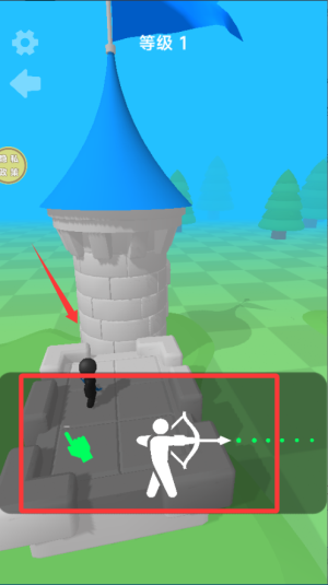 1、核心操作围绕弓箭射击展开,玩家通过滑动屏幕控制瞄准方向,松开手指释放箭矢,精准命中敌人要害部位。