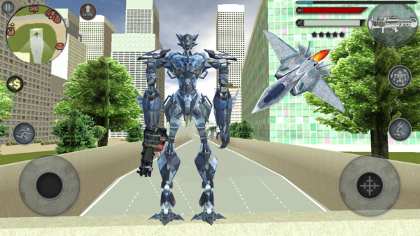 - 机器人飞行模拟器主打机甲飞行与变形战斗,地球遭外星人机器人攻击,唯有你的机器人喷气飞机能与之对抗,机器人可从汽车形态转为人类直立形态,适配不同地