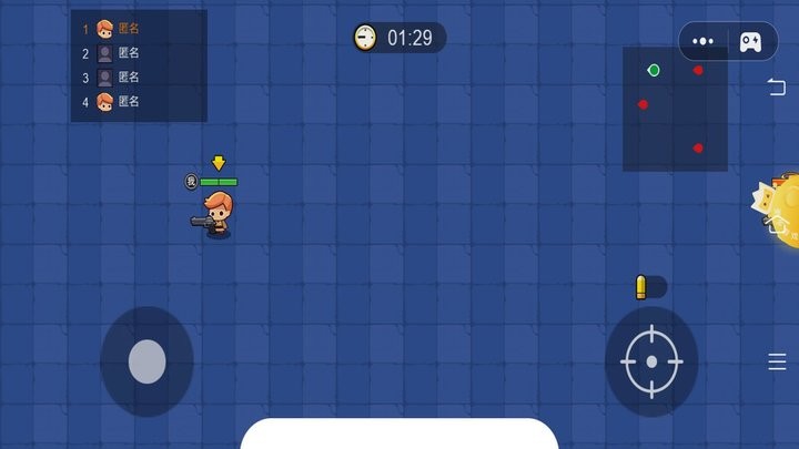 1、通过虚拟摇杆控制移动,滑动屏幕调整射击准星角度。