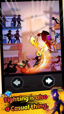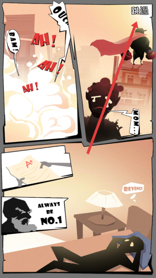 1、漫画呈现角色复仇背景,点击右上角的跳过,快速进入游戏后操控火柴人在城市场景探索。
