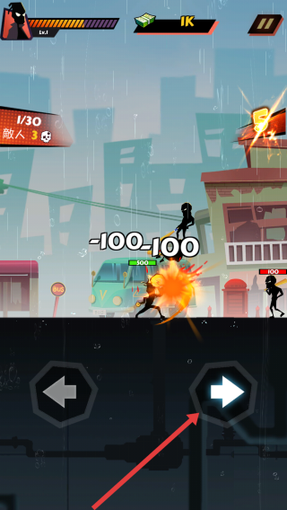 2、在战斗时,通过左右按键控制移动,躲避敌人攻击并反击,消灭关卡敌人推进游戏进程。