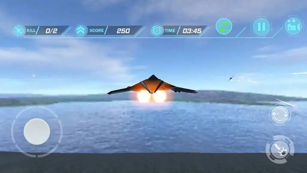2、动作丰富的战斗表现:飞行器的战斗动作丰富多样,包括空中翻滚、急速闪避、精准射击、导弹追踪等,配合武器命中目标时的爆炸特效,让战斗画面极具观赏性。
