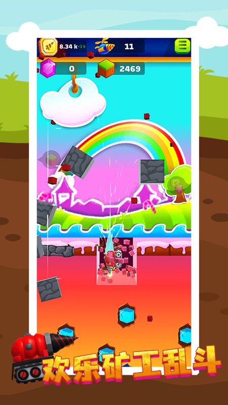 - 欢乐矿工乱斗安卓版带来轻松有趣的挖矿体验。在游戏中,你需要操控角色使用各类工具开采地下资源,每把镐头都有独特特性。地图路线充满变数,需要随时调整