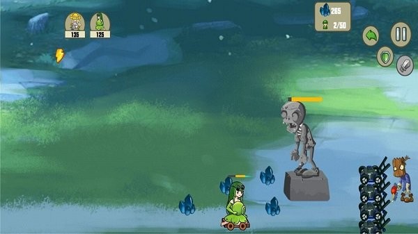 3、放置防御挑战:核心玩法围绕放置植物保护领土展开,用户需根据僵尸类型与进攻路线合理布局,快速完成各类塔防挑战,逐步成长为塔防高手。