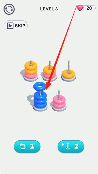 1、初始探索与熟悉:场景熟悉后,观察彩色篮圈的分布状态,尝试移动篮圈熟悉操作方式,感受拼图的基本逻辑,为探索规律打下基础。